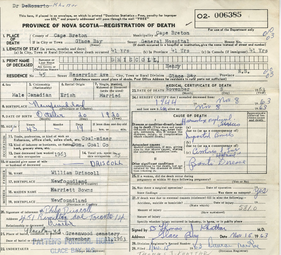 Death Registration: Year: 1963 number: 6385