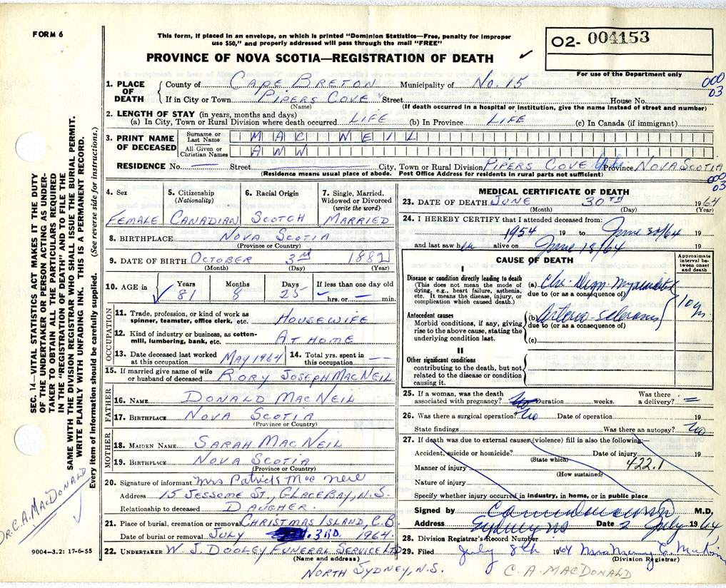 Nova Scotia Archives — https://archives.novascotia.ca/vital-statistics/death/?ID=450167