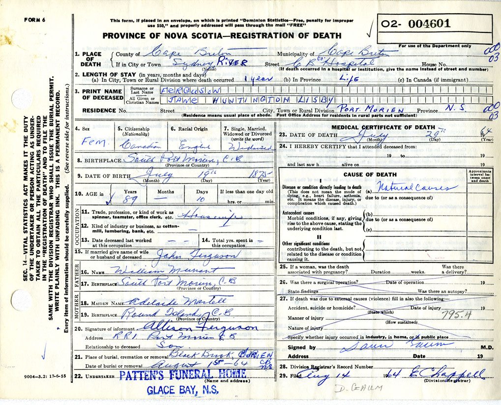 Nova Scotia Archives — https://archives.novascotia.ca/vital-statistics/death/?ID=450615