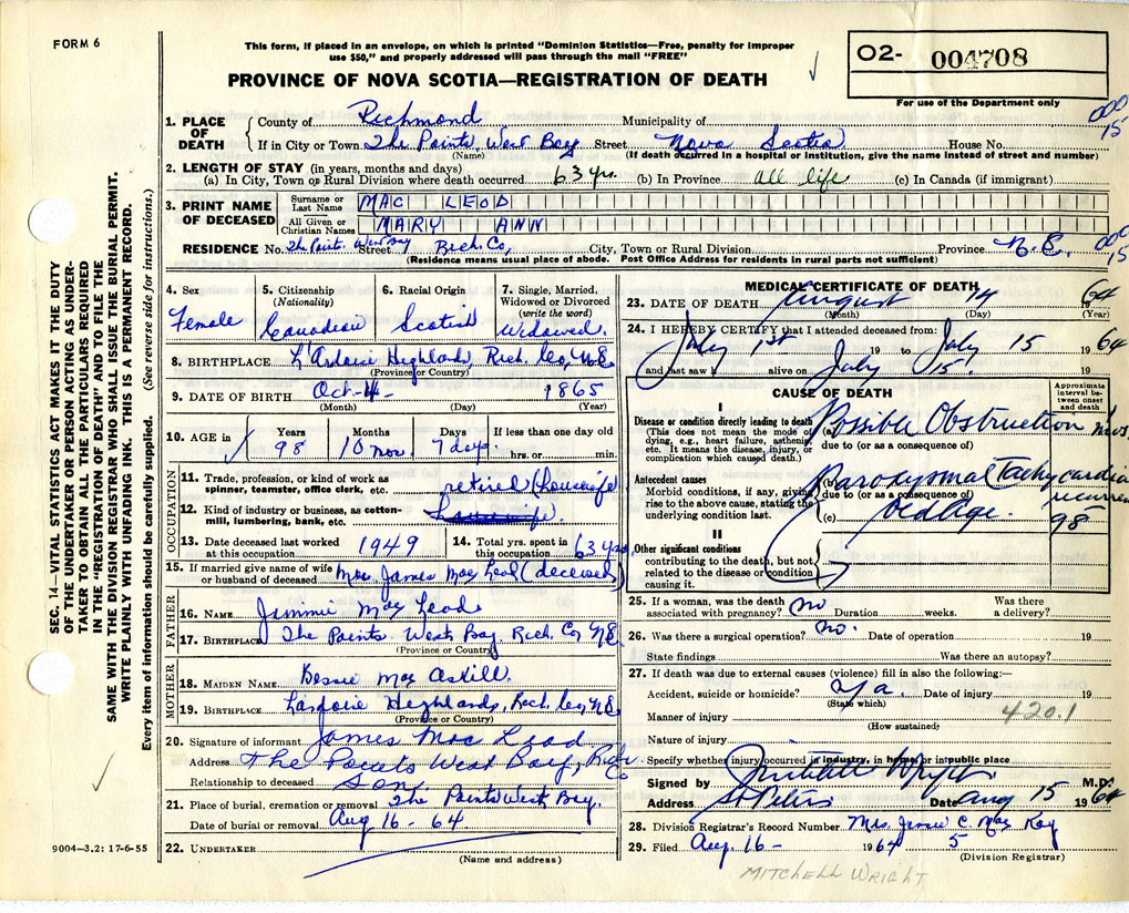 Nova Scotia Archives — https://archives.novascotia.ca/vital-statistics/death/?ID=450722
