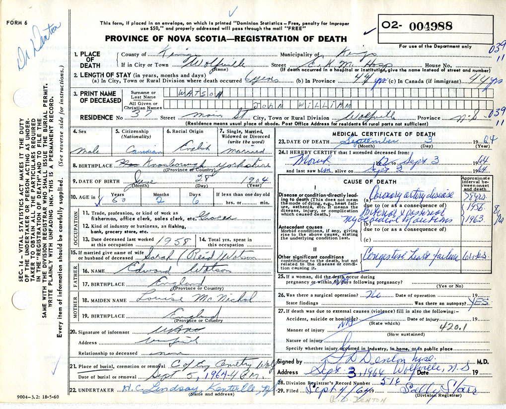 Death Registration: Year: 1964 number: 4988