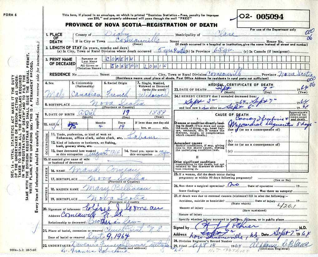 Death Registration: Year: 1964 number: 5094