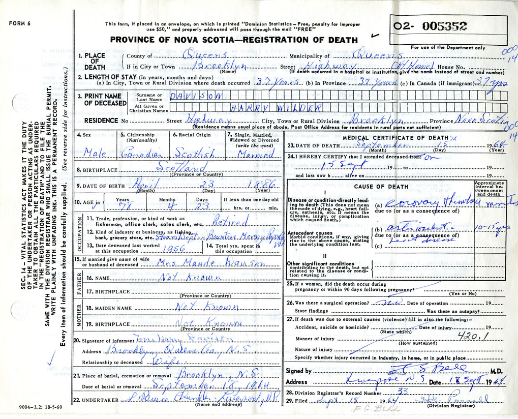 Death Registration: Year: 1964 number: 5352
