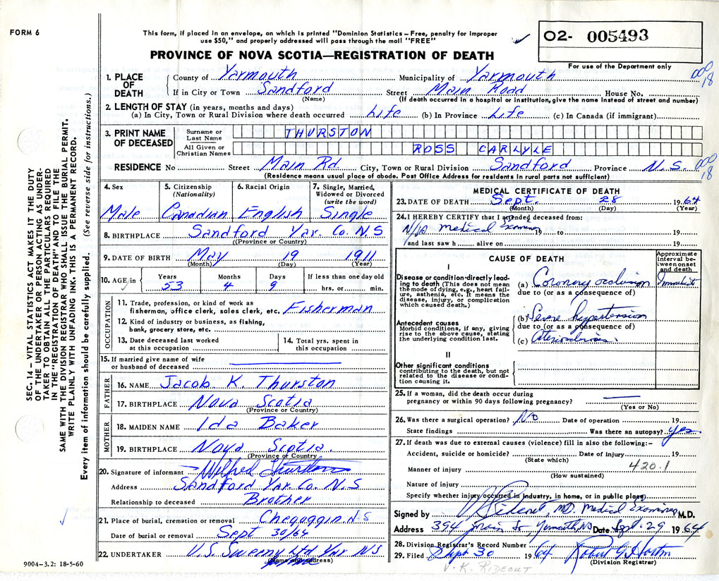 Death Registration: Year: 1964 number: 5493
