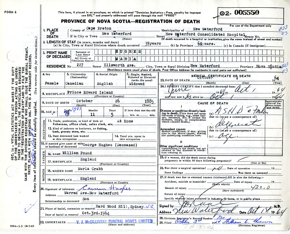 Death Registration: Year: 1964 number: 5550