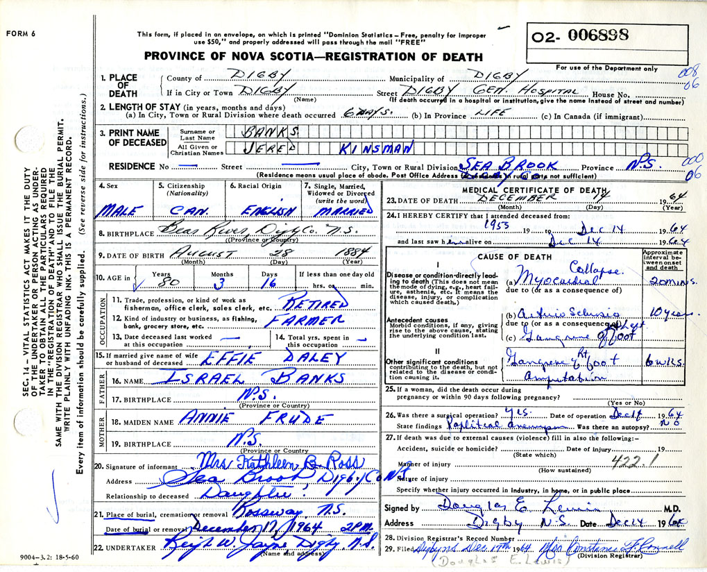 Death Registration: Year: 1964 number: 6898