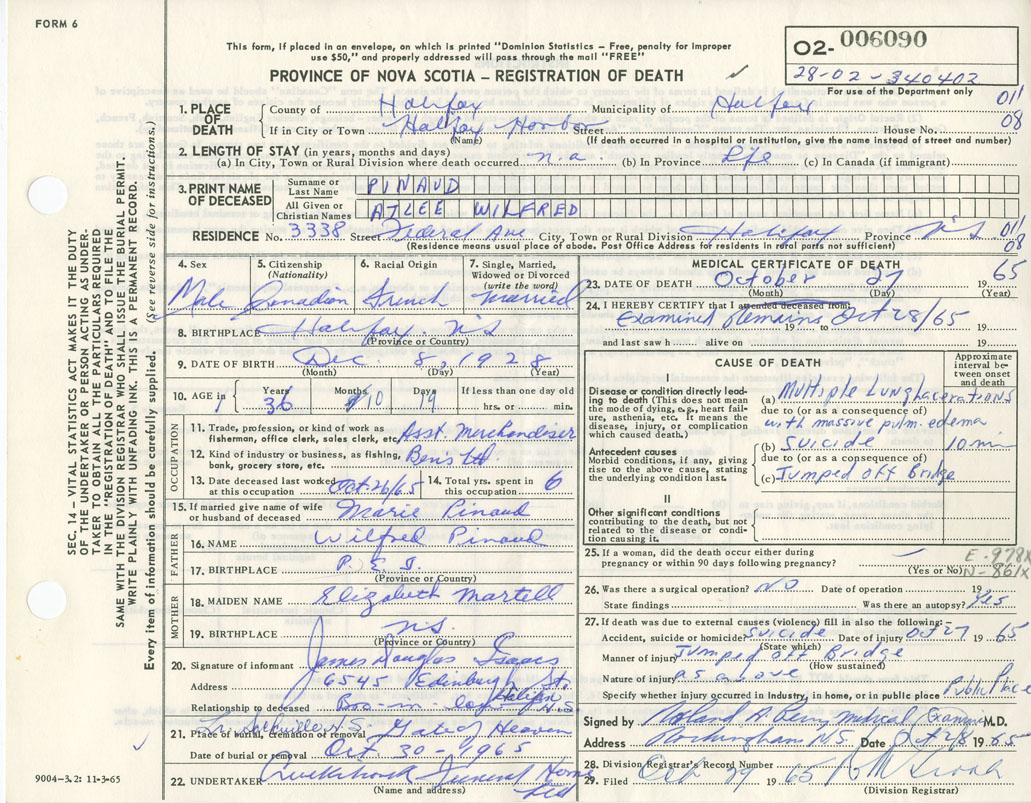 Death Registration: Year: 1965 number: 6090