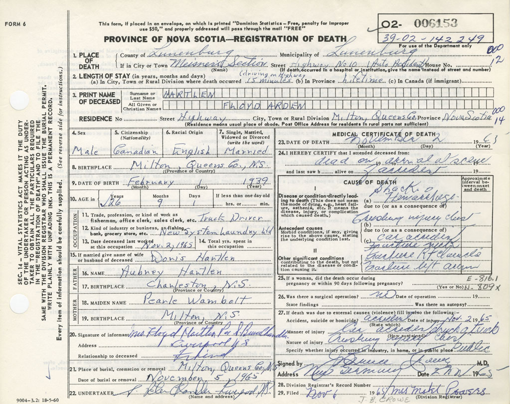 Death Registration: Year: 1965 number: 6153