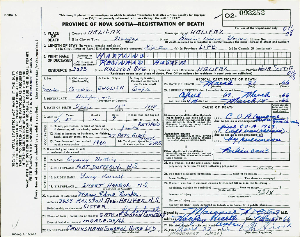Death Registration: Year: 1966 number: 2252