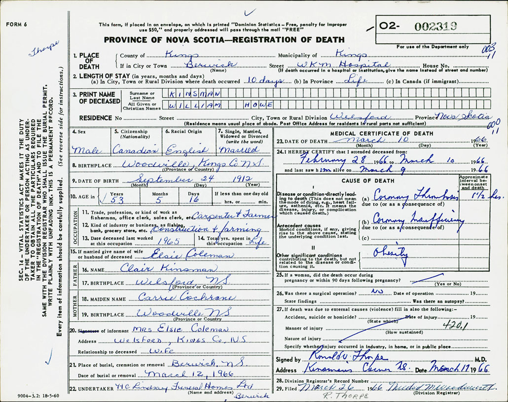 Death Registration: Year: 1966 number: 2319