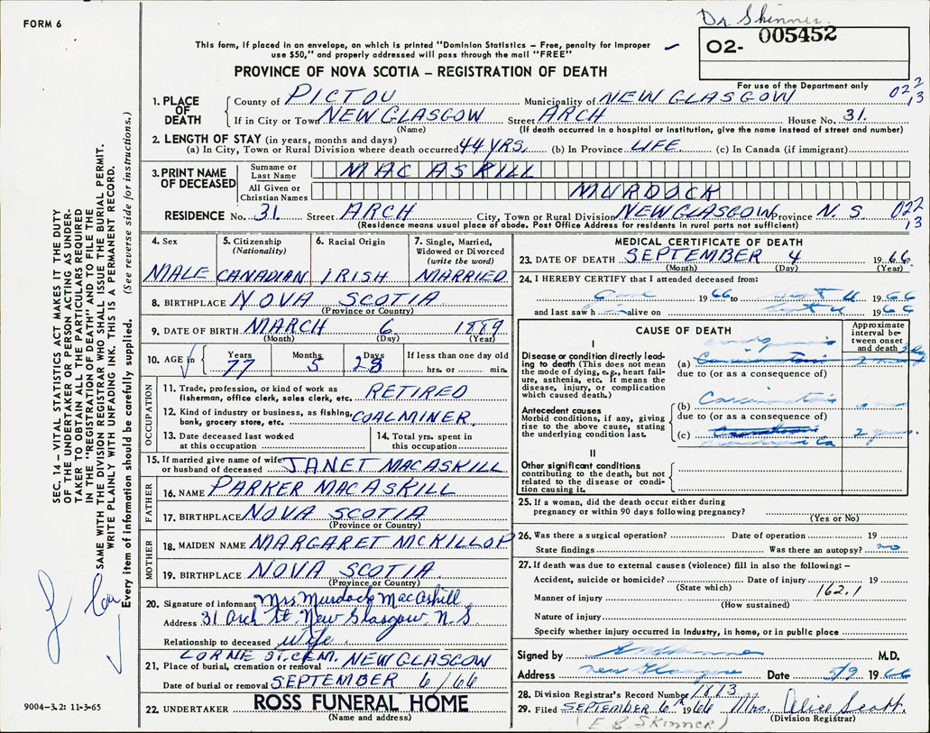 Nova Scotia Archives — https://archives.novascotia.ca/vital-statistics/death/?ID=464228