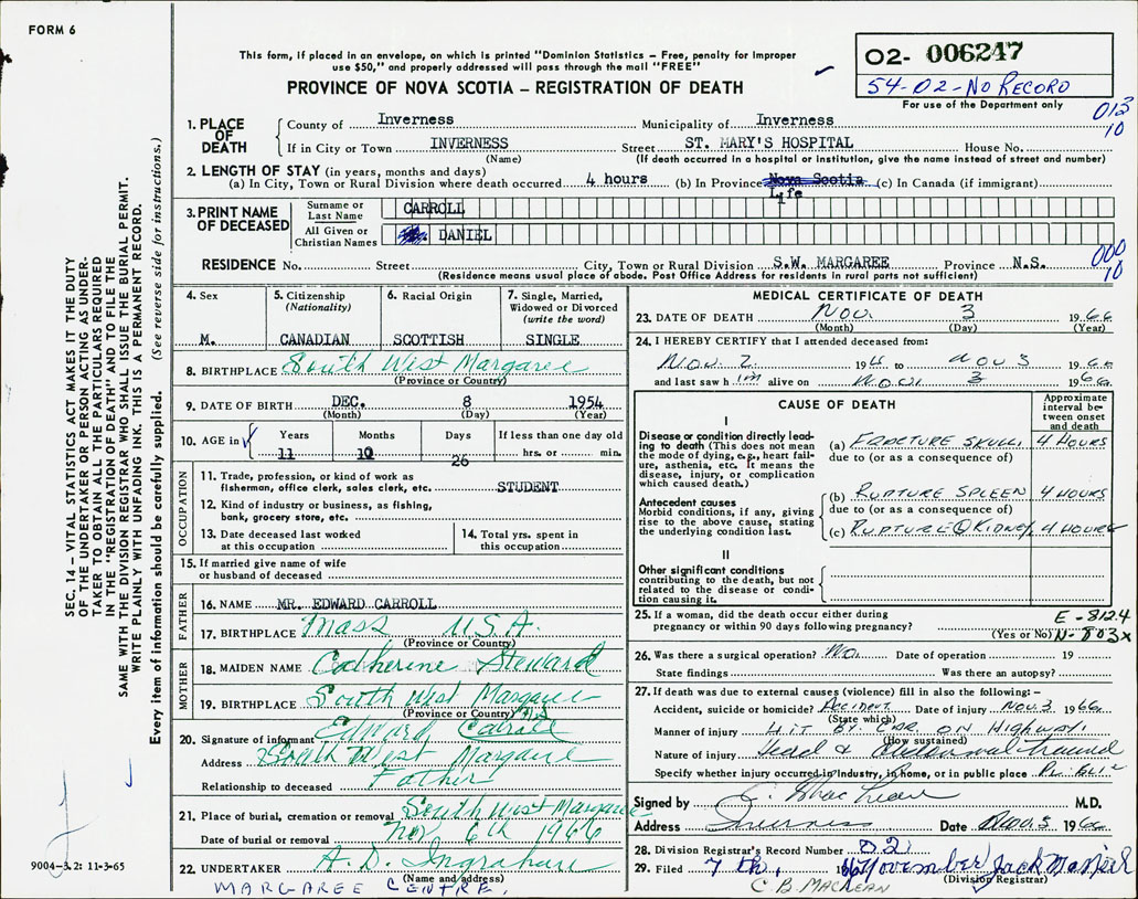 Death Registration: Year: 1966 number: 6247