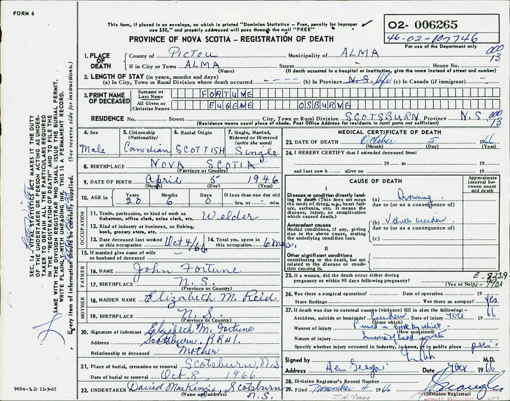 Death Registration: Year: 1966 number: 6265