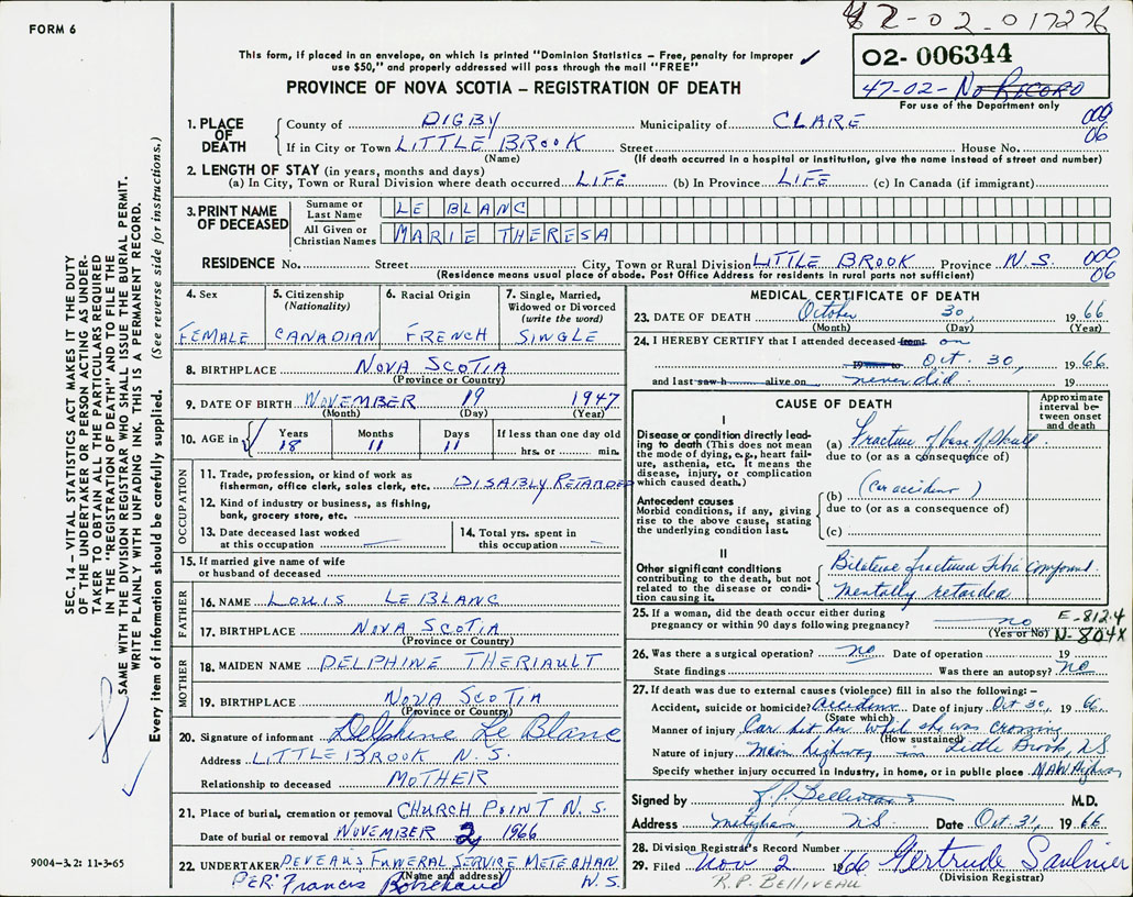 Death Registration: Year: 1966 number: 6344