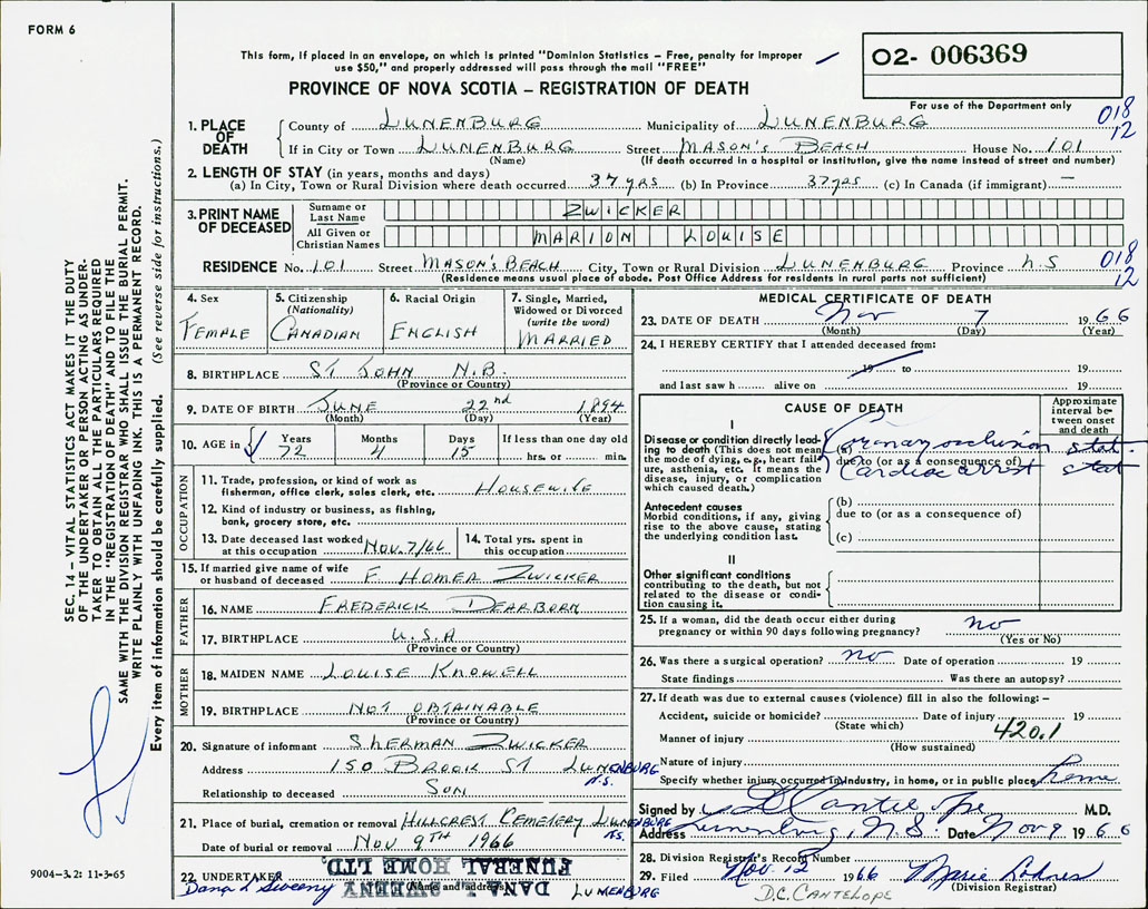 Death Registration: Year: 1966 number: 6369