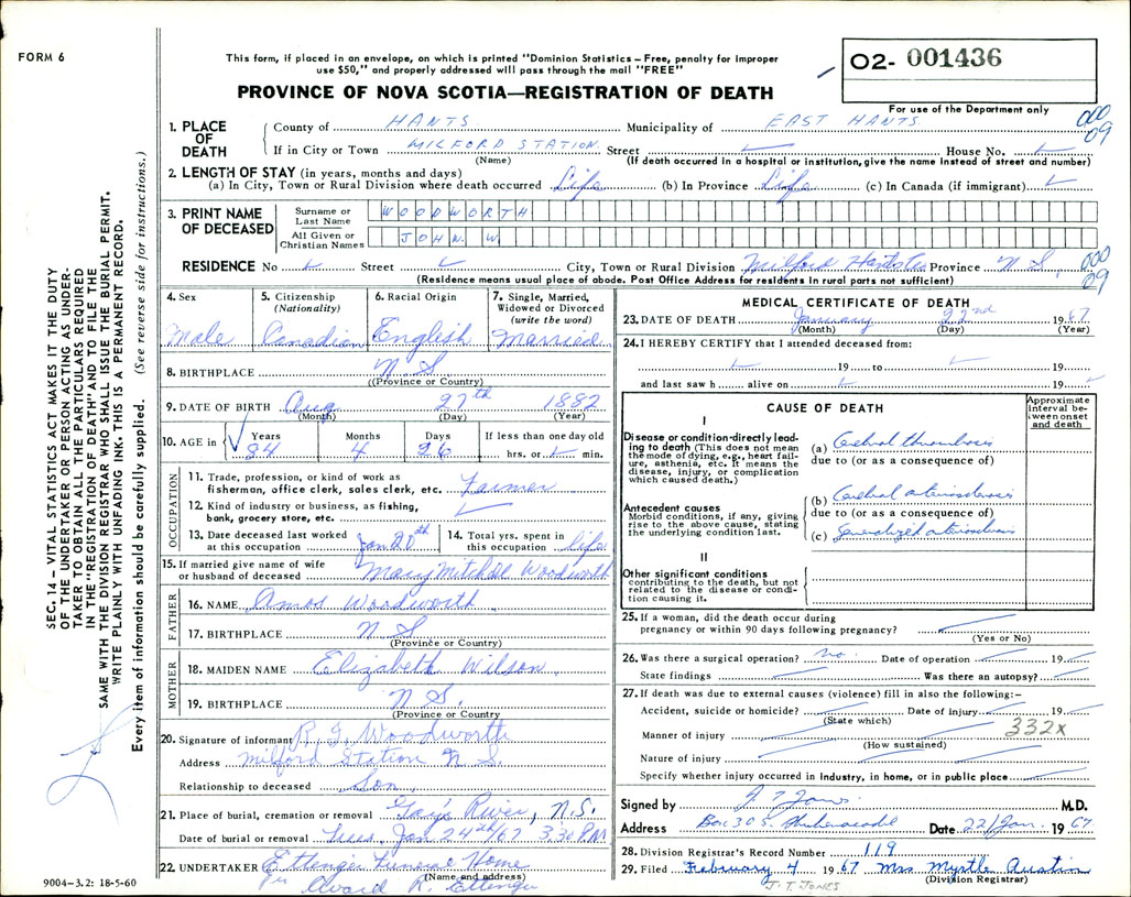 Death Registration: Year: 1967 number: 1436