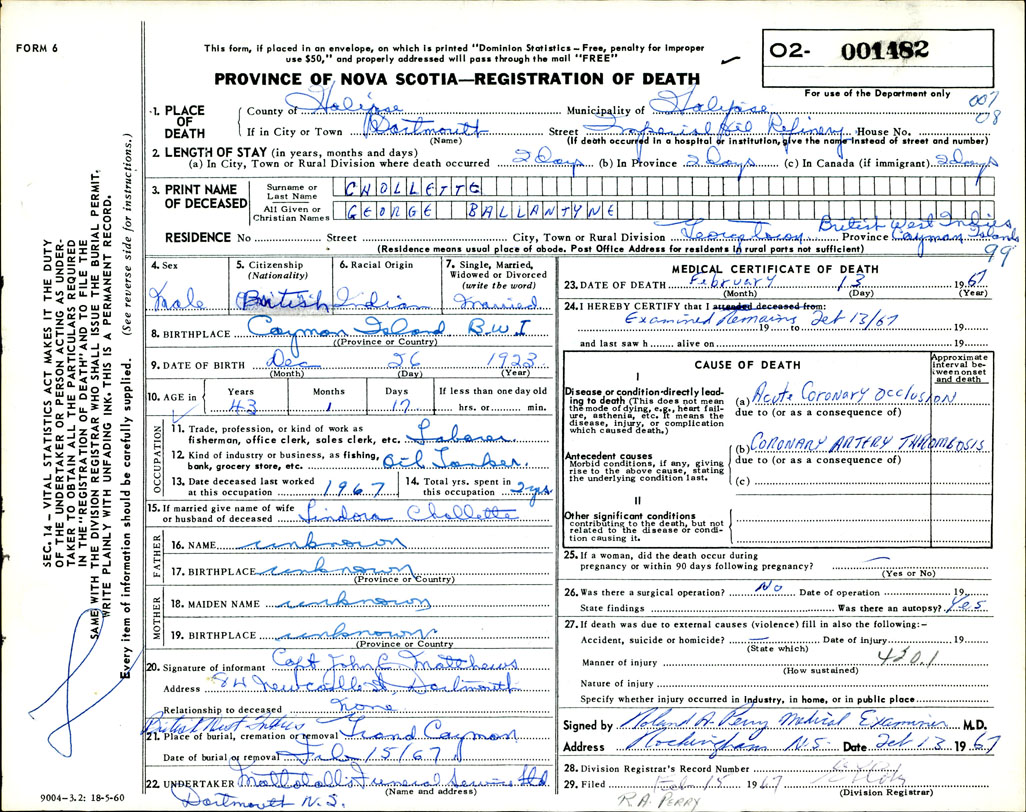 Death Registration: Year: 1967 number: 1482