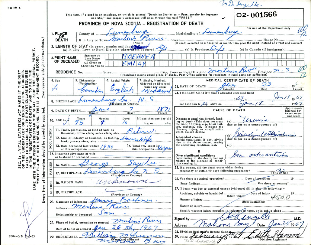 Death Registration: Year: 1967 number: 1566