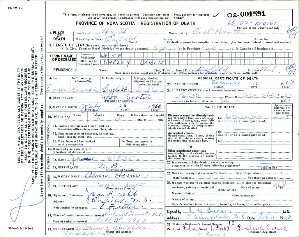 Death Registration: Year: 1967 number: 1591