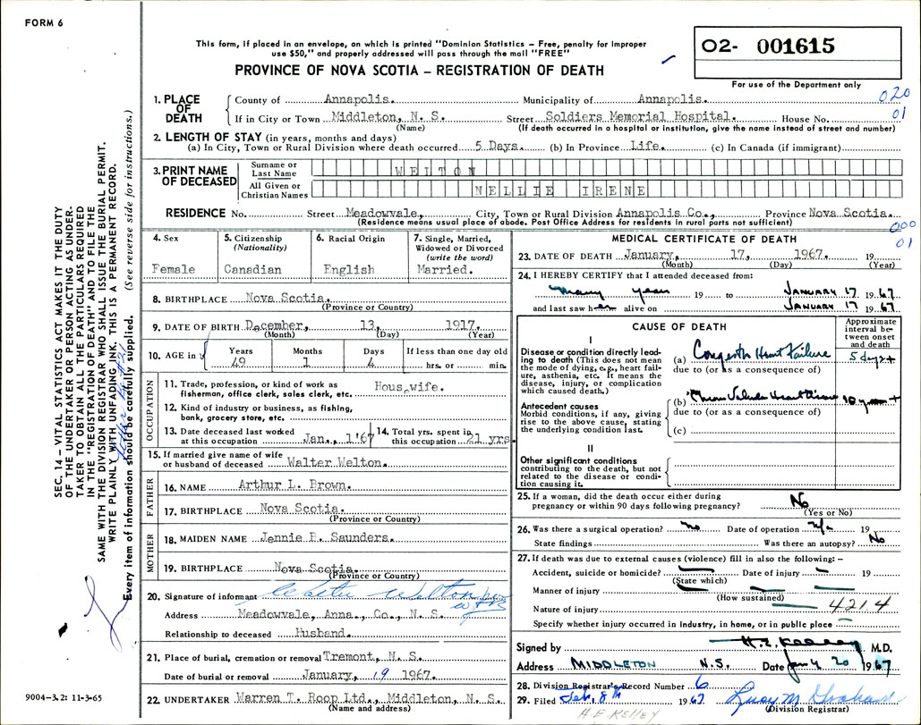 Death Registration: Year: 1967 number: 1615
