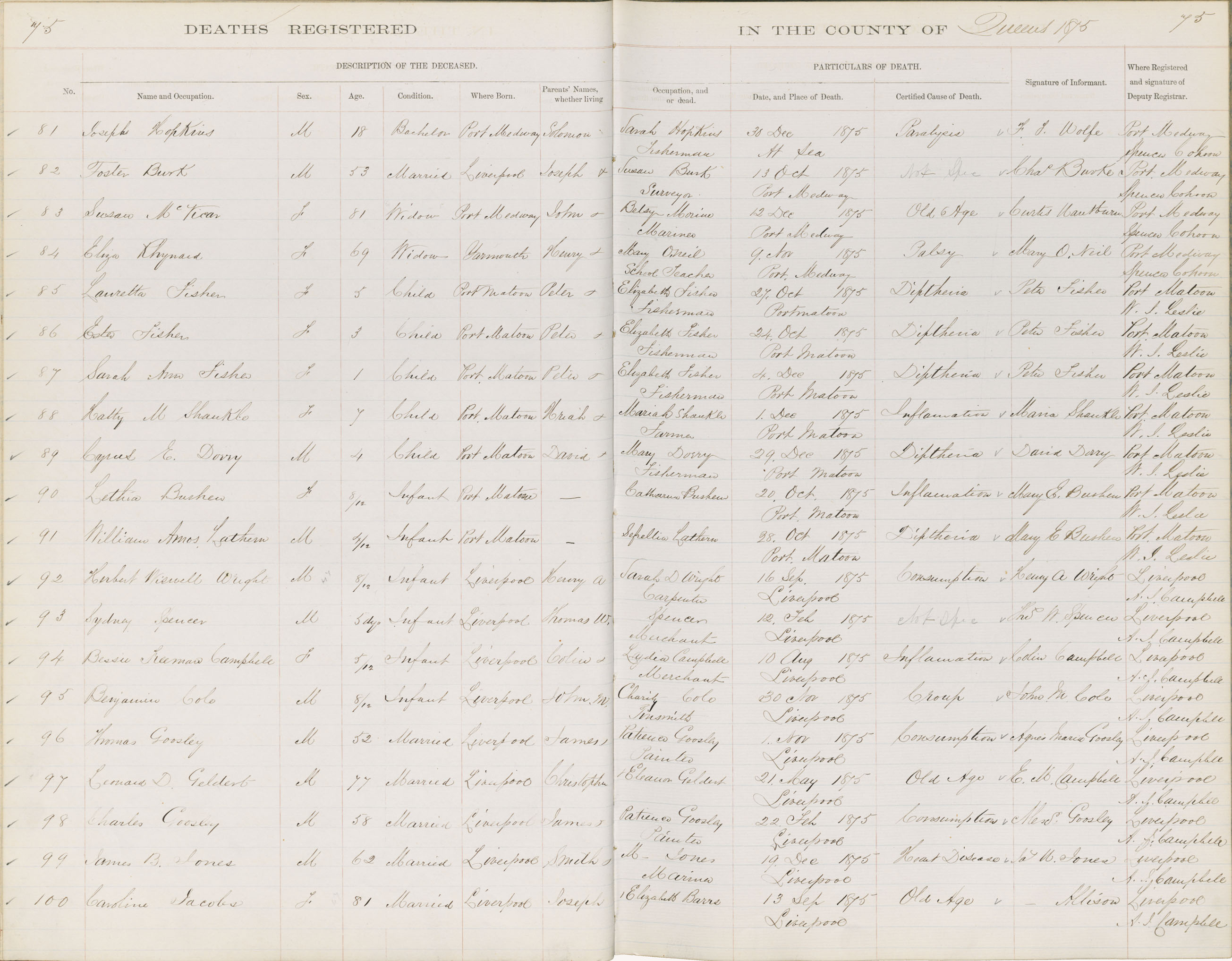 Death Registration: Year: 1875 book: 1814 page: 75 number: 100