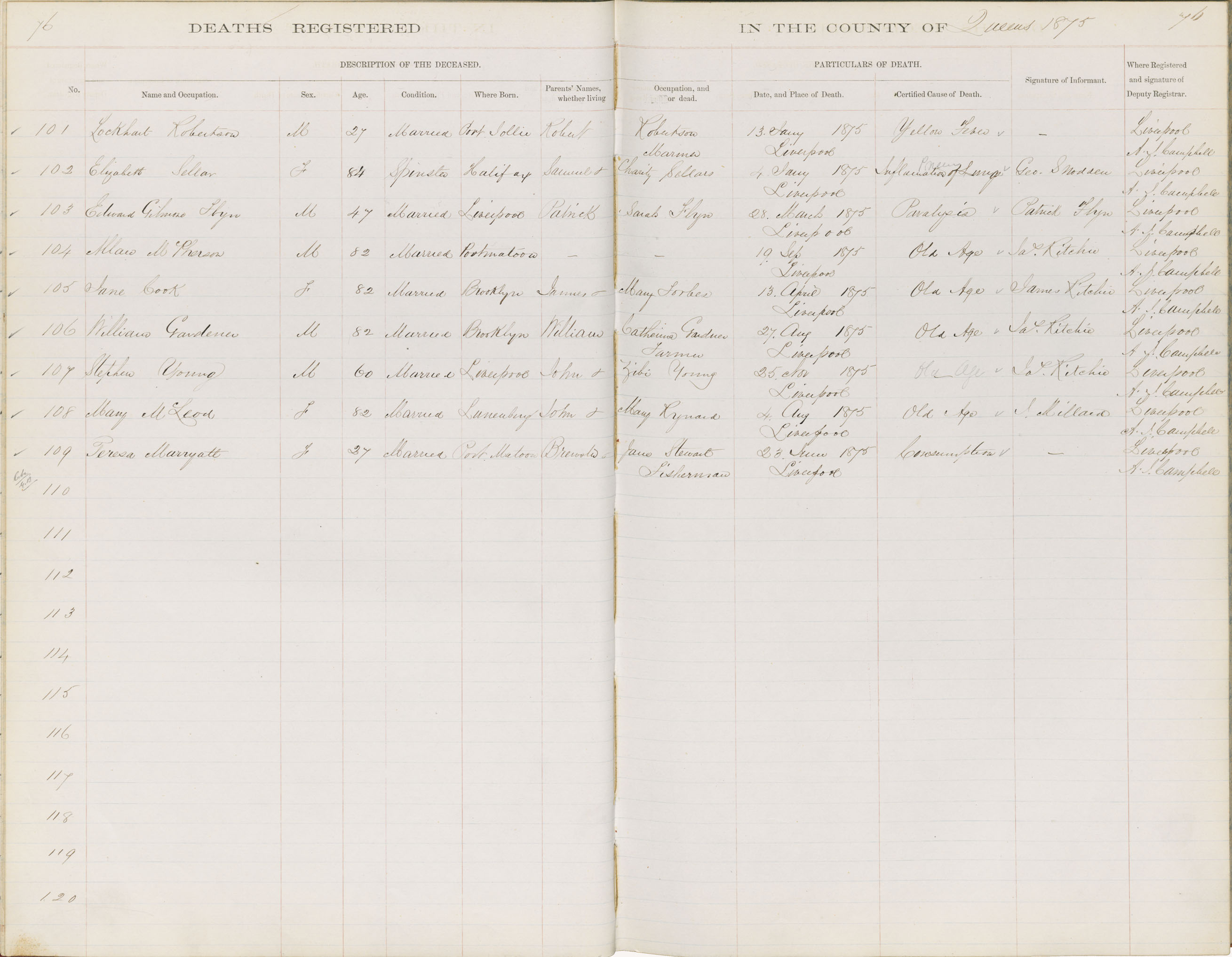 Death Registration: Year: 1875 book: 1814 page: 76 number: 109
