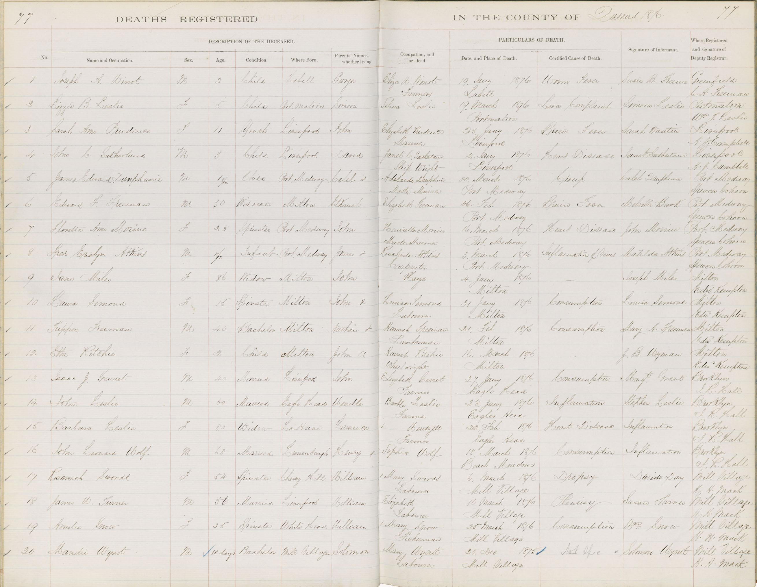 Death Registration: Year: 1875 book: 1814 page: 77 number: 20