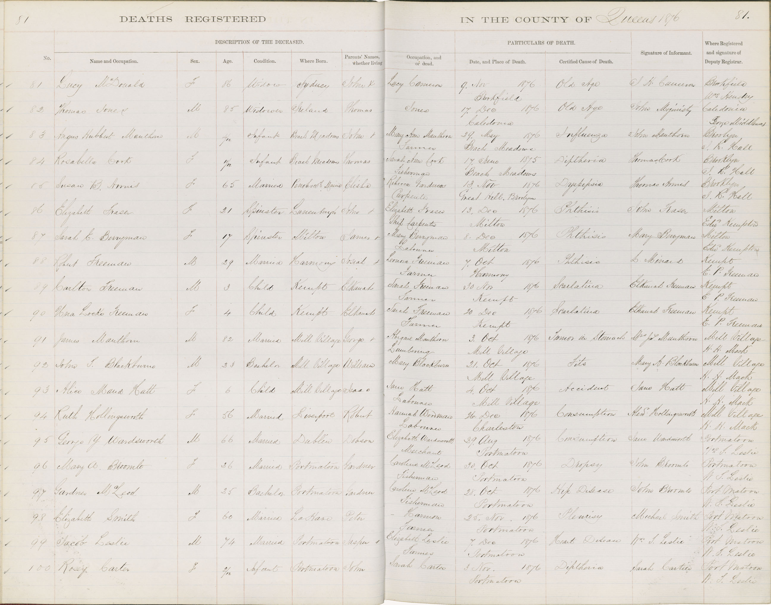 Death Registration: Year: 1876 book: 1814 page: 81 number: 100