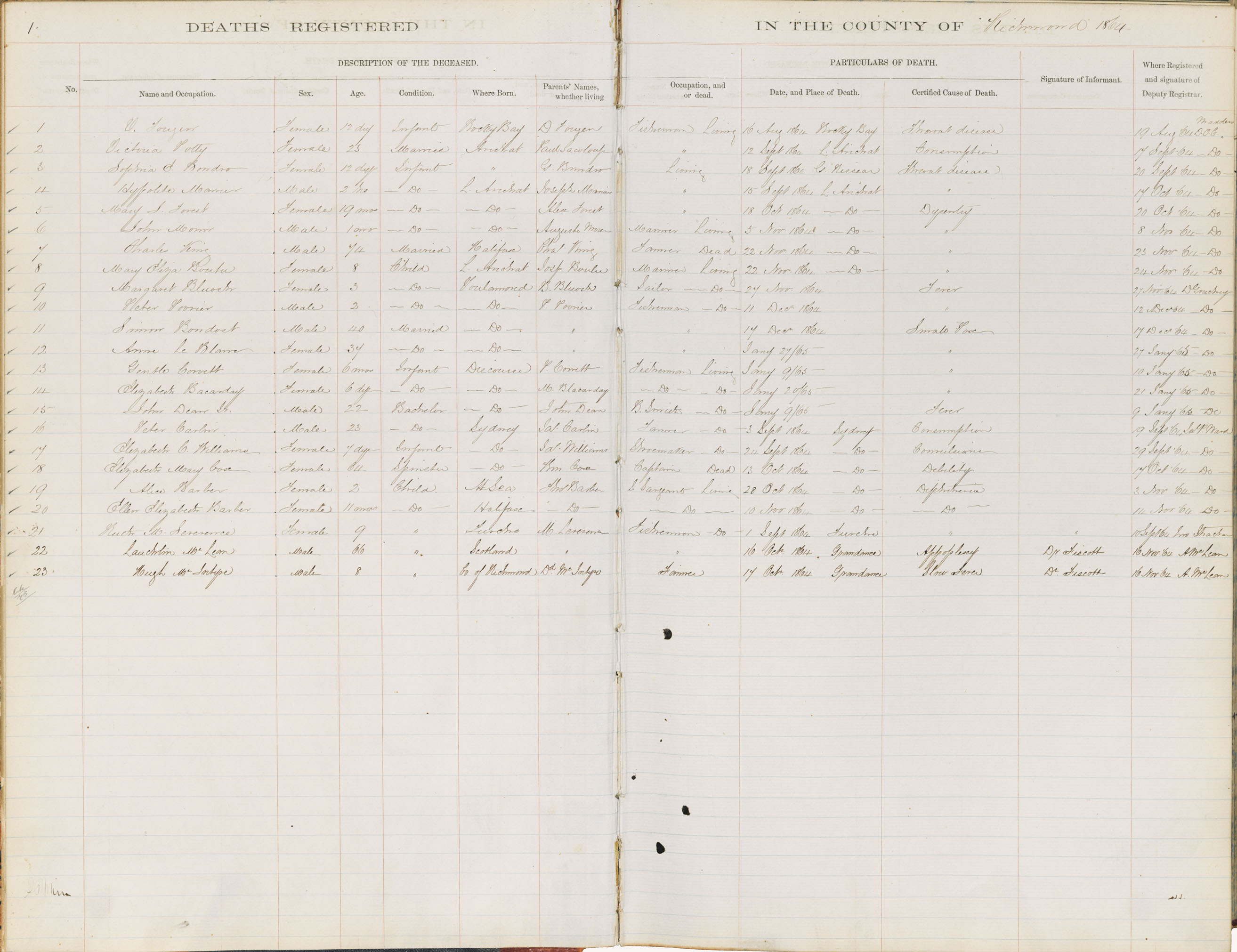 Death Registration: Year: 1864 book: 1815 page: 1 number: 23