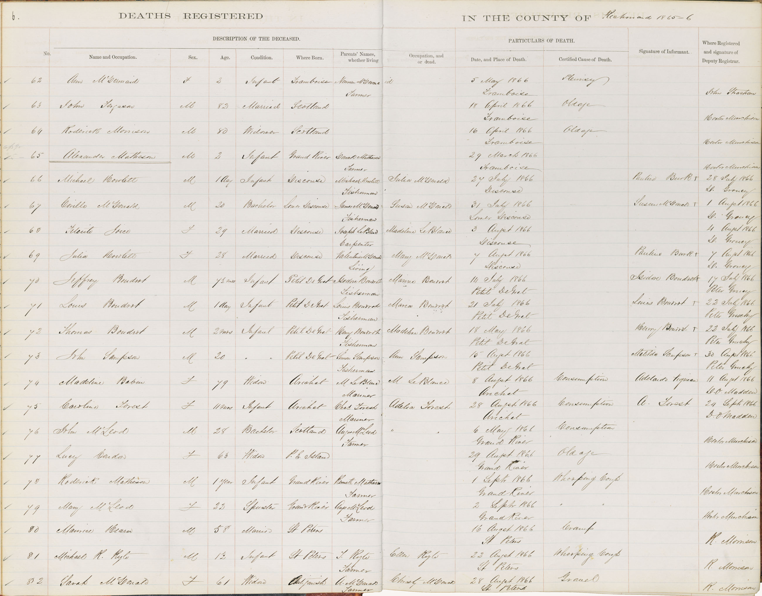 Death Registration: Year: 1866 book: 1815 page: 6 number: 62