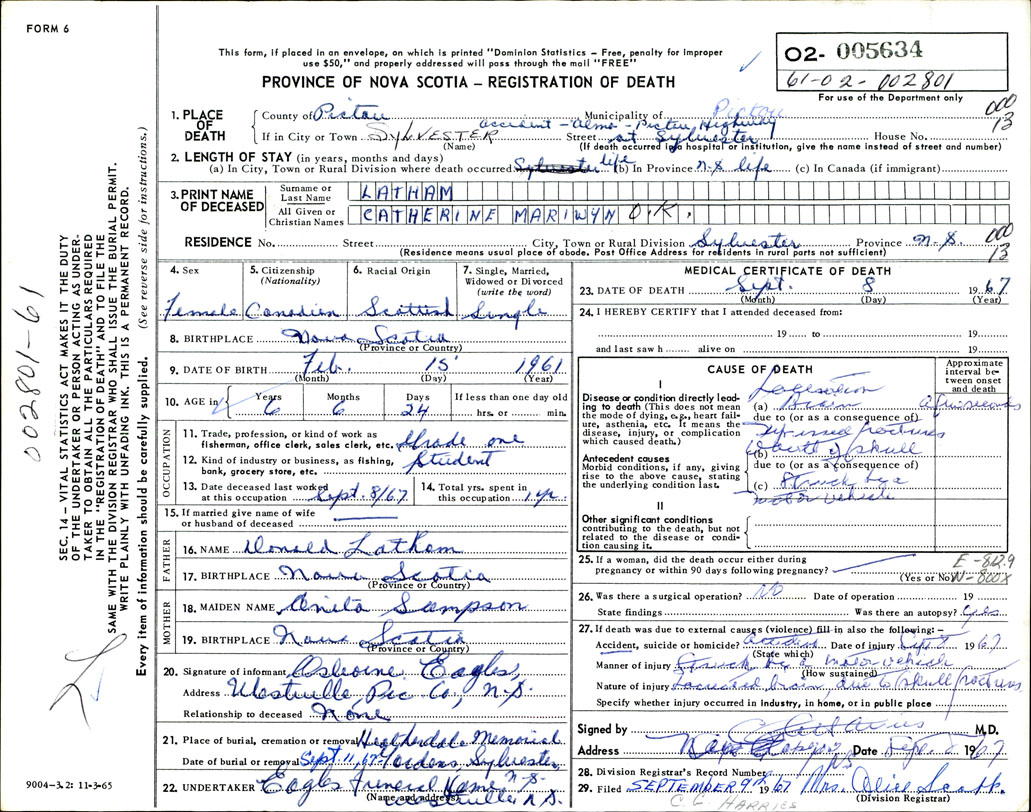 Death Registration: Year: 1967 number: 5634