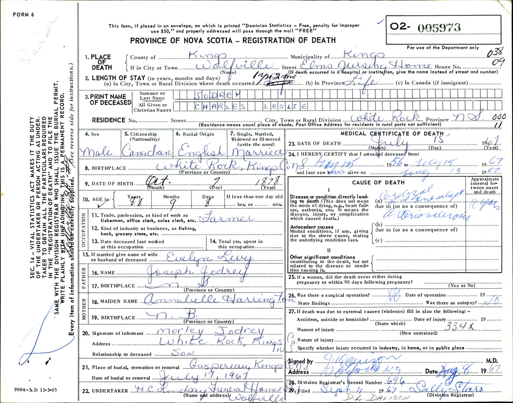 Death Registration: Year: 1967 number: 5973