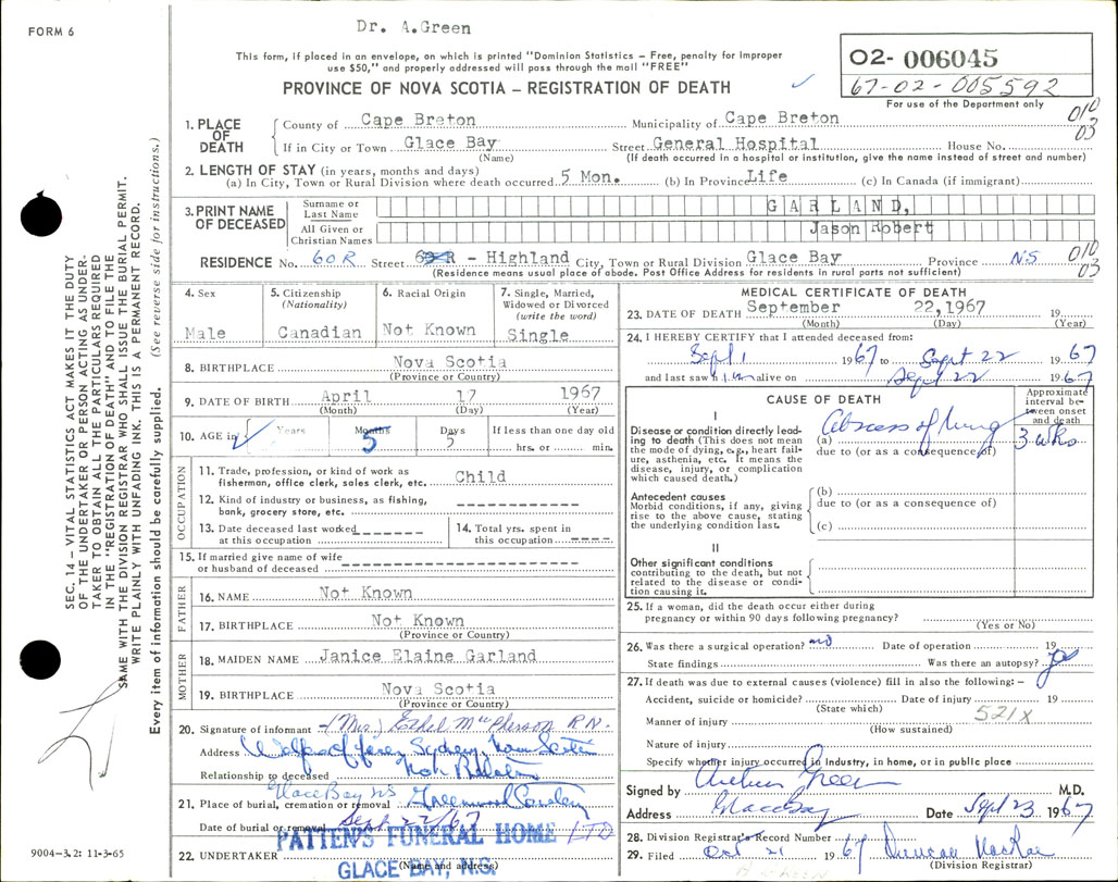 Death Registration: Year: 1967 number: 6045
