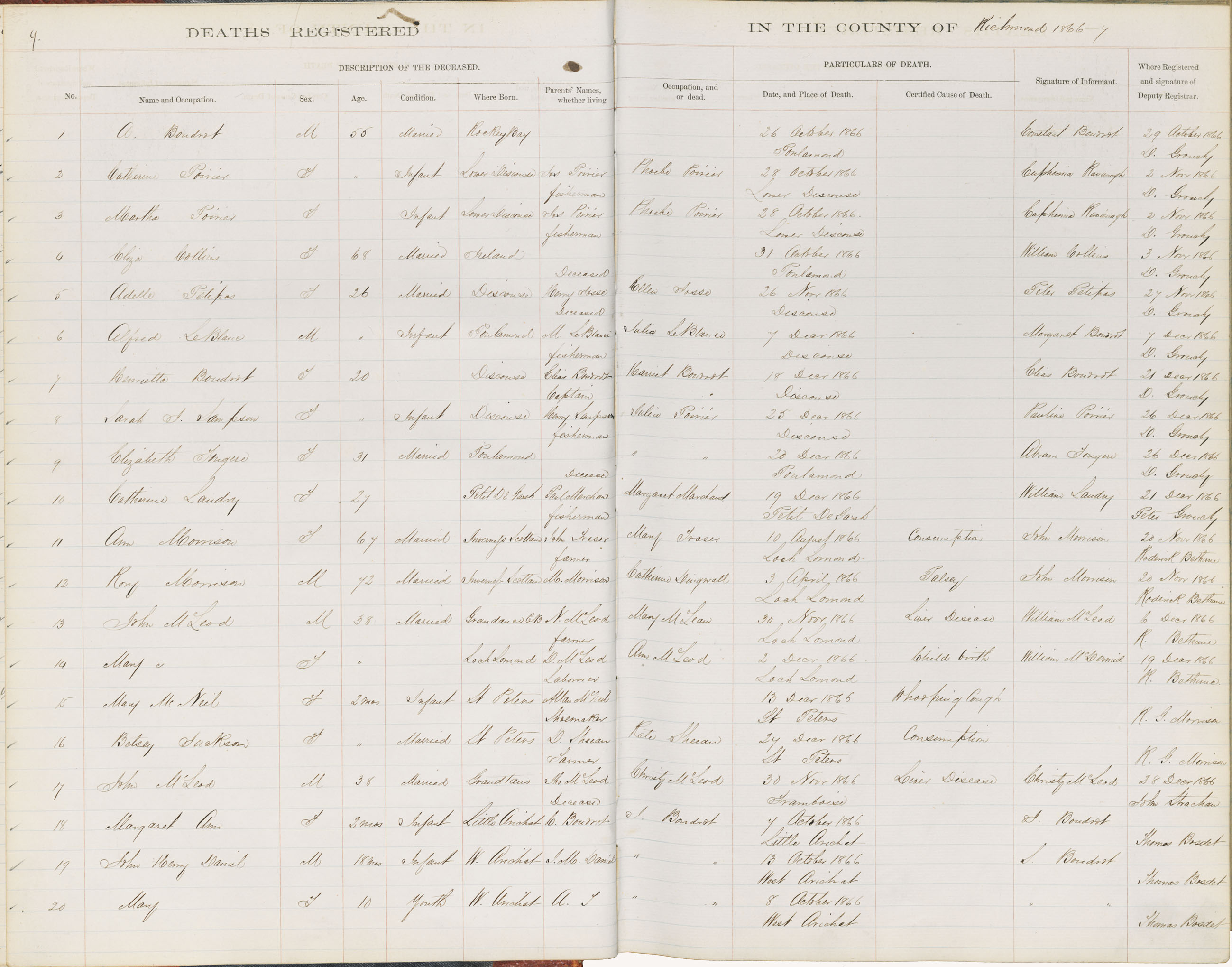 Death Registration: Year: 1866 book: 1815 page: 9 number: 1