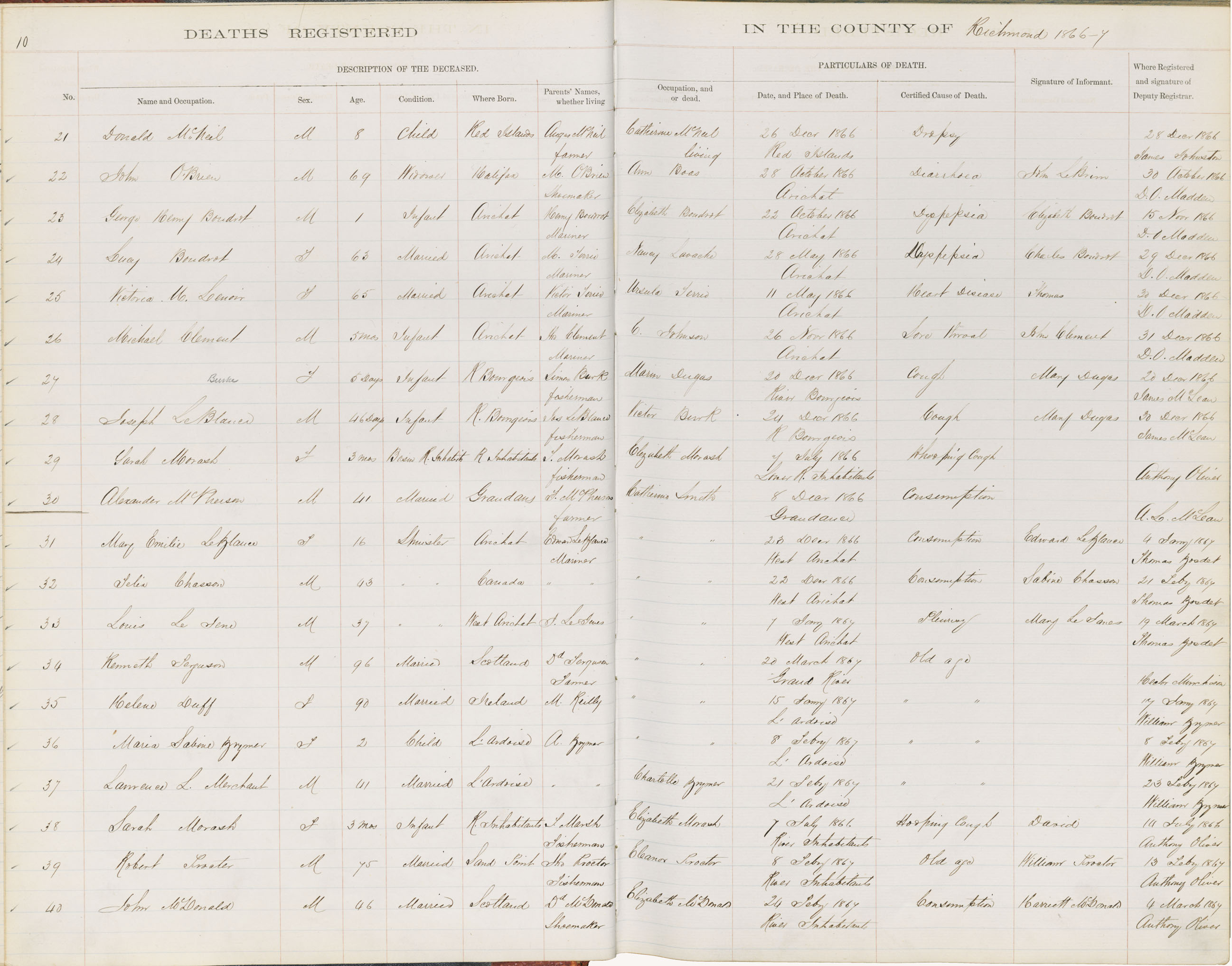 Death Registration: Year: 1866 book: 1815 page: 10 number: 21