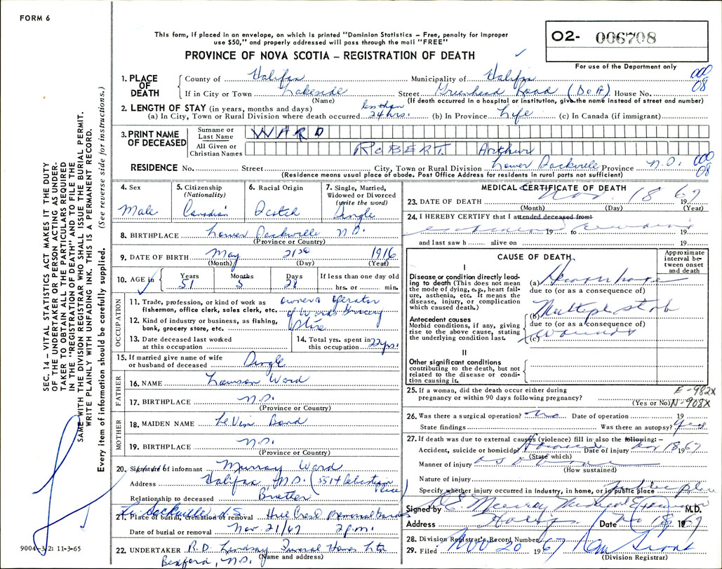 Death Registration: Year: 1967 number: 6708