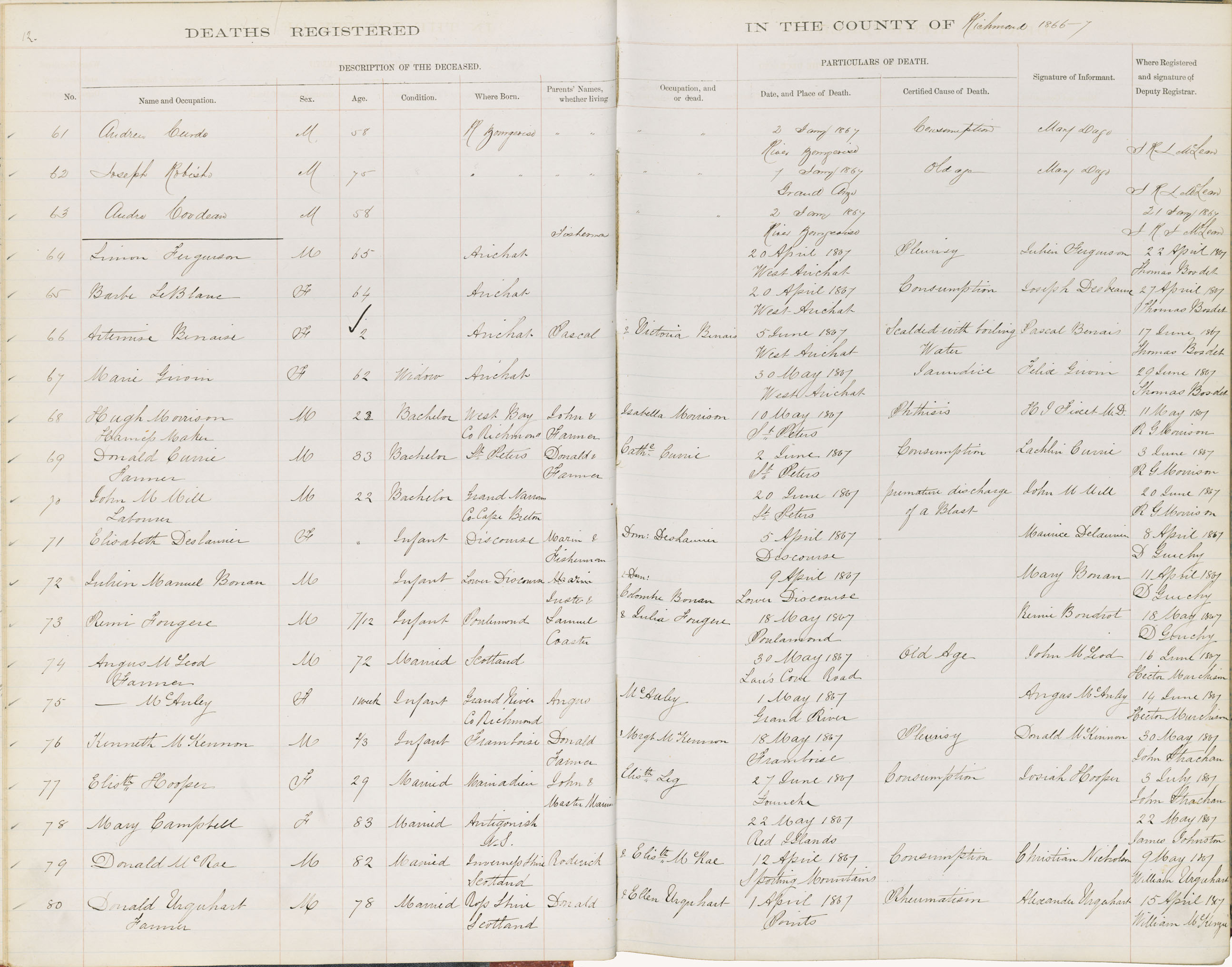 Death Registration: Year: 1867 book: 1815 page: 12 number: 61