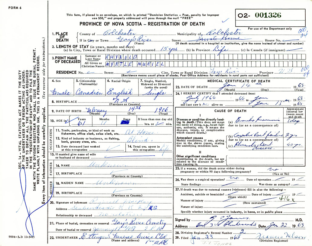 Death Registration: Year: 1968 number: 1326