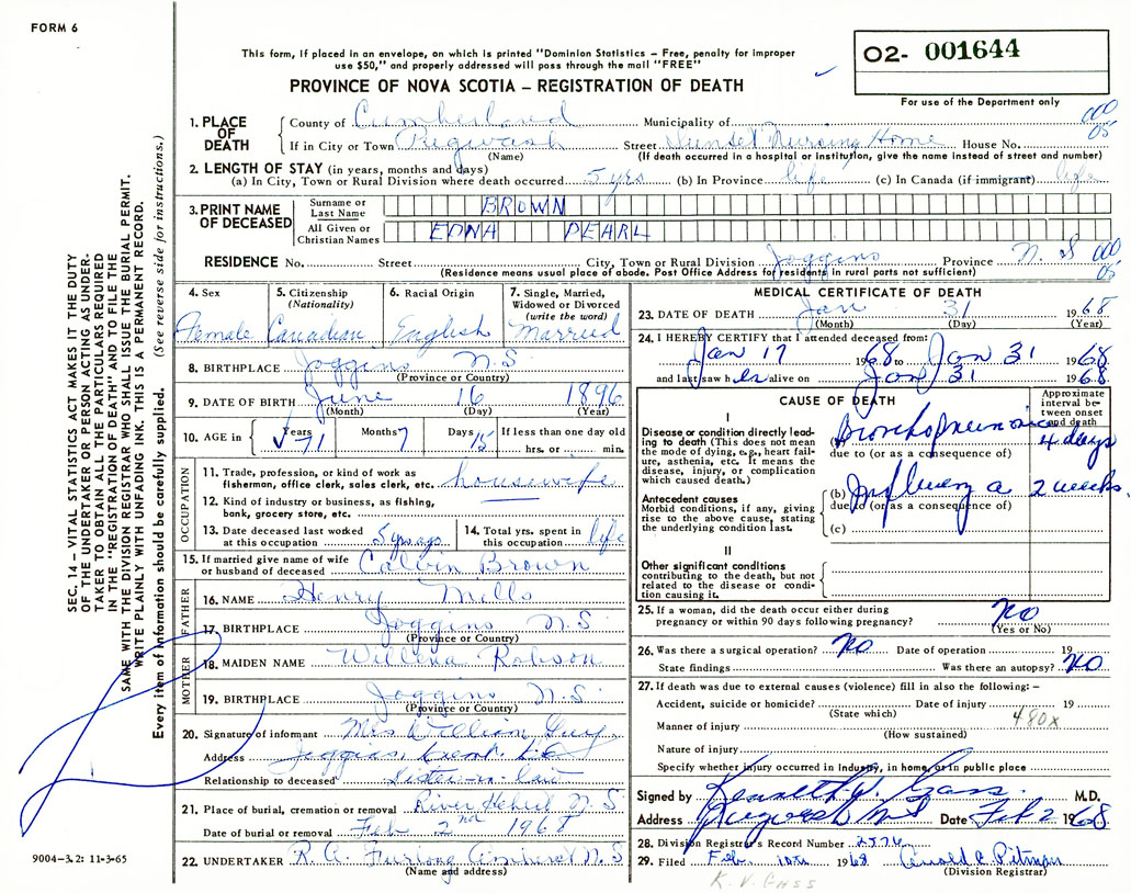 Death Registration: Year: 1968 number: 1644