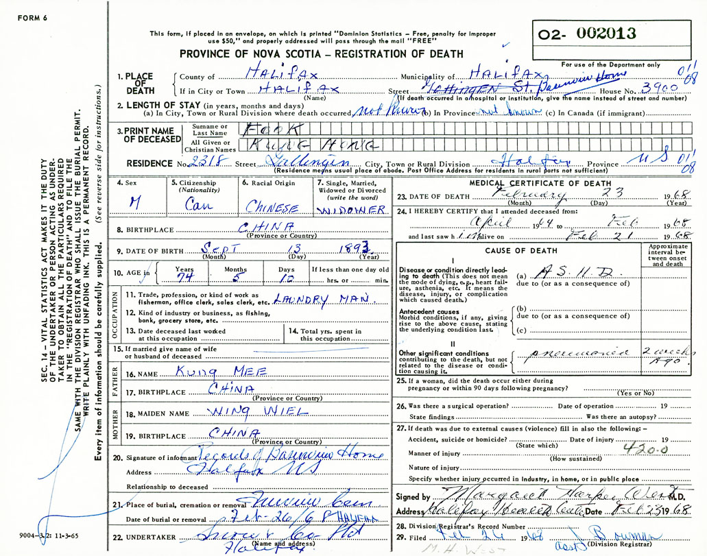 Death Registration: Year: 1968 number: 2013