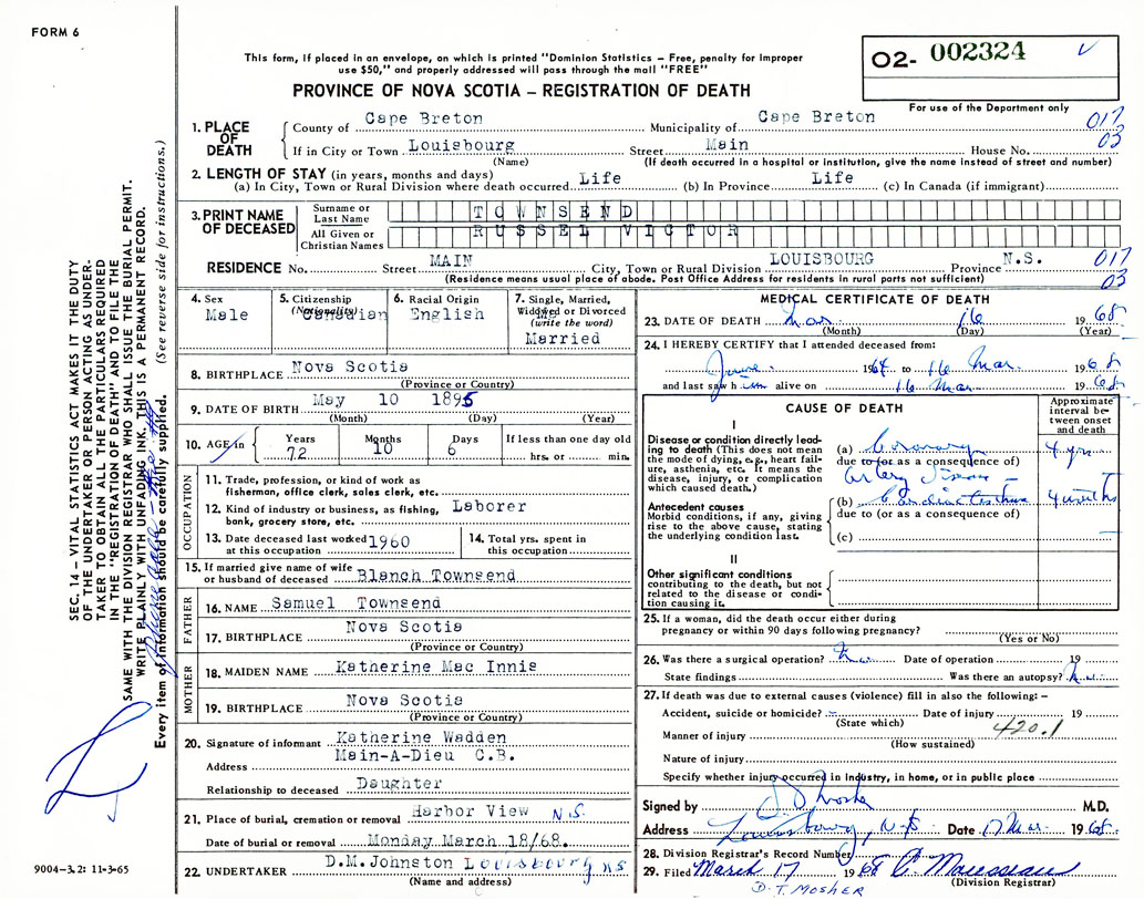 Death Registration: Year: 1968 number: 2324