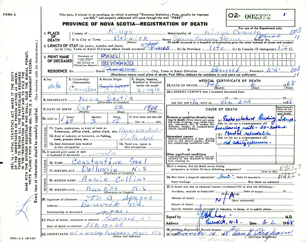 Death Registration: Year: 1968 number: 2372