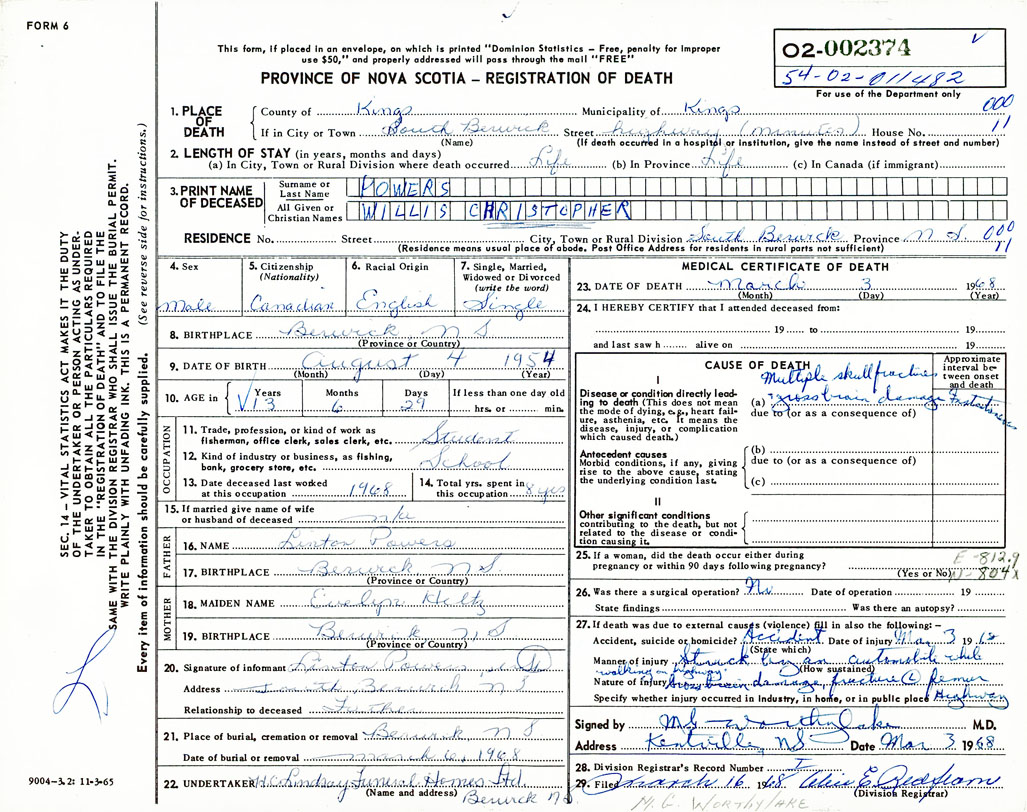Death Registration: Year: 1968 number: 2374