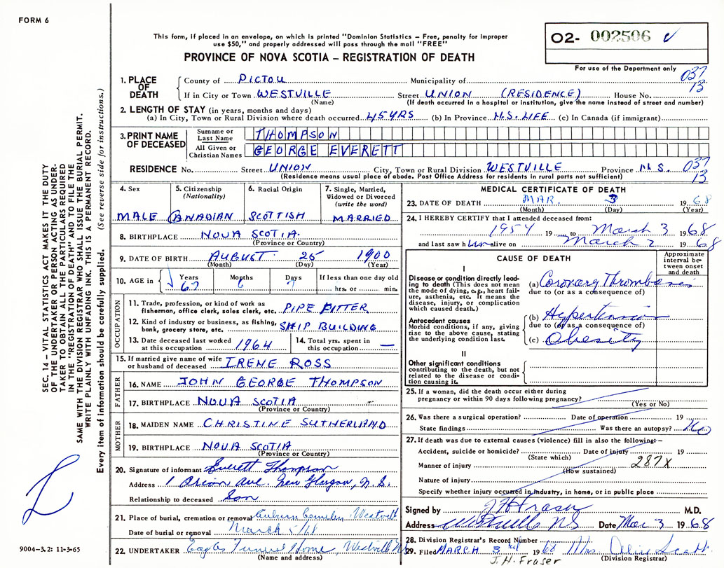 Death Registration: Year: 1968 number: 2506