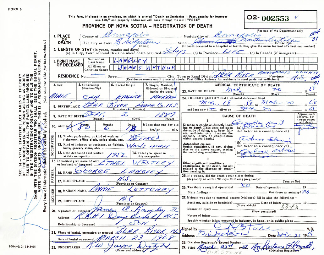 Death Registration: Year: 1968 number: 2553