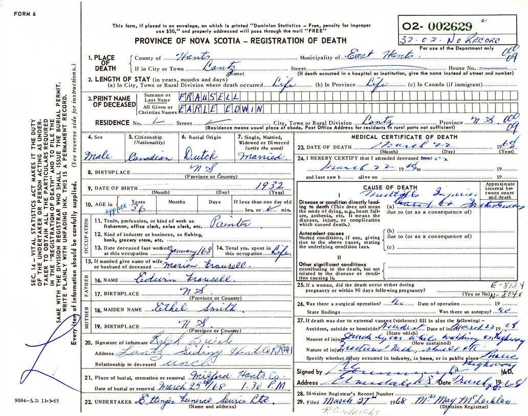 Death Registration: Year: 1968 number: 2629