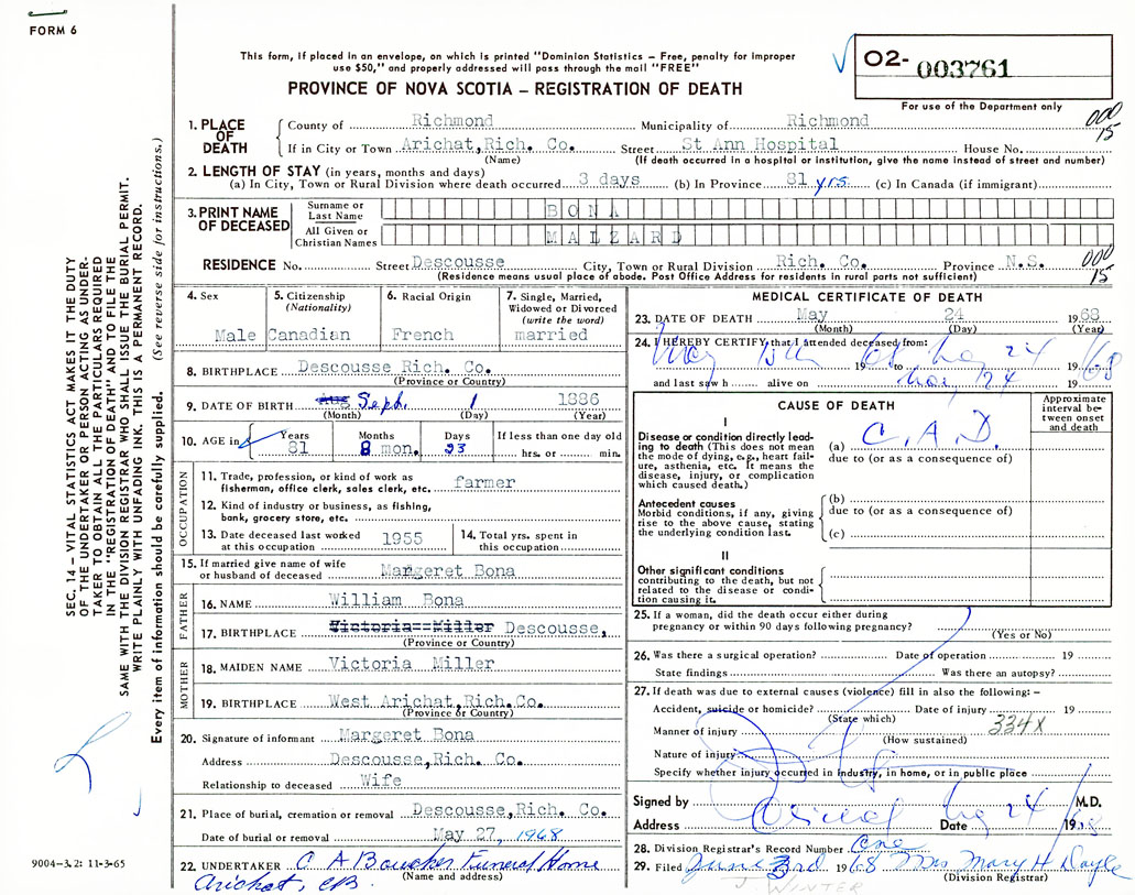 Death Registration: Year: 1968 number: 3761