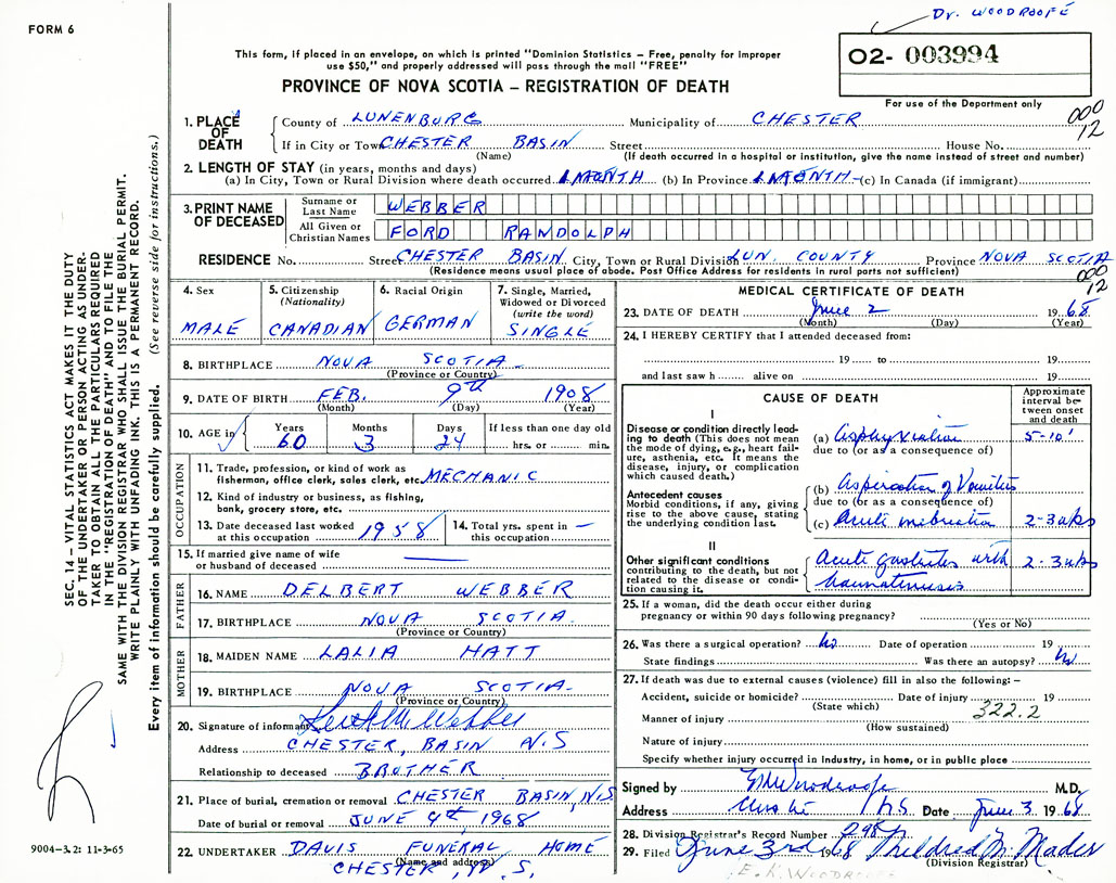 Death Registration: Year: 1968 number: 3994