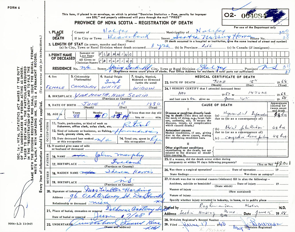 Death Registration: Year: 1968 number: 4084