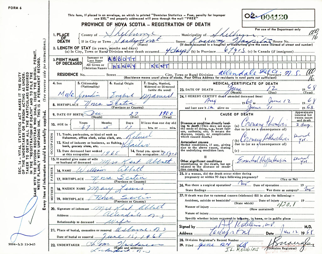 Death Registration: Year: 1968 number: 4120